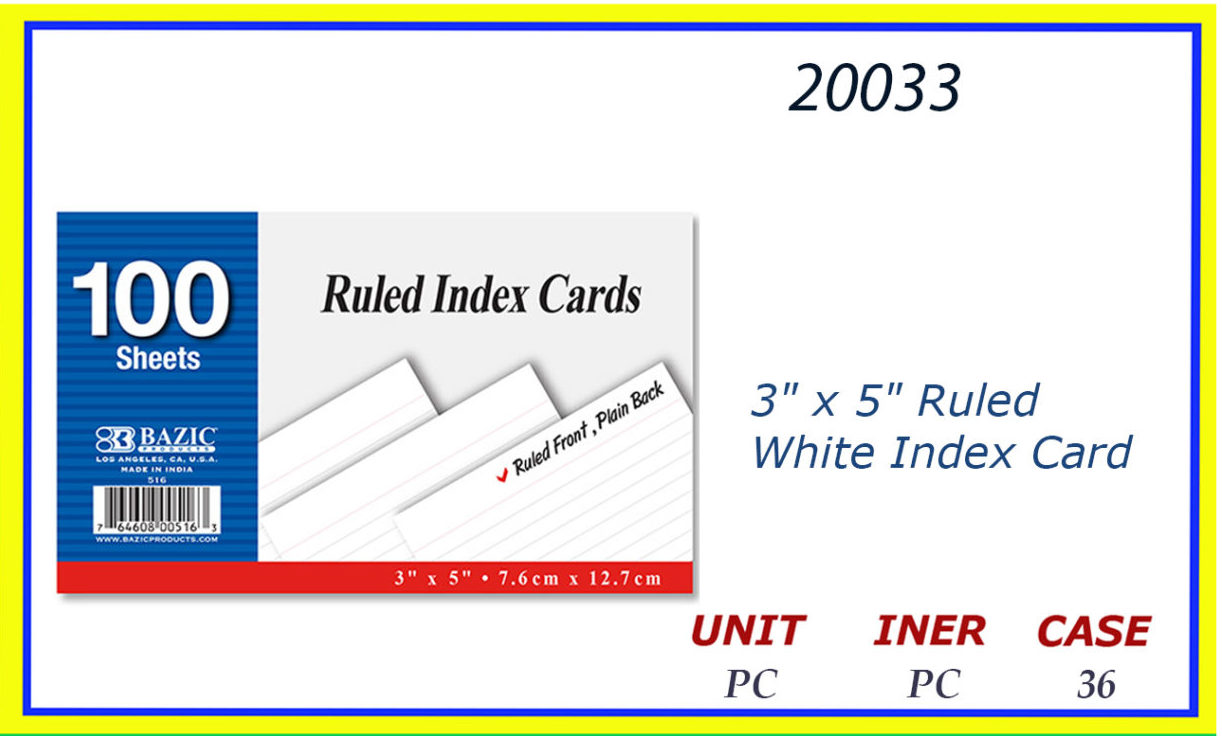20033 – 3″X 5″ INDEX RULED CARDS