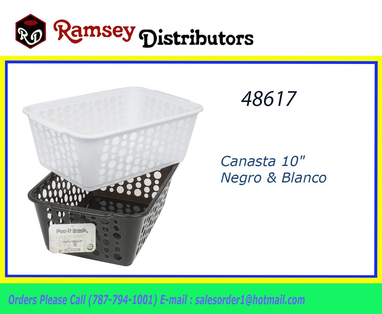 48617 – 24205 Canasta 10″ Negro & Blanco